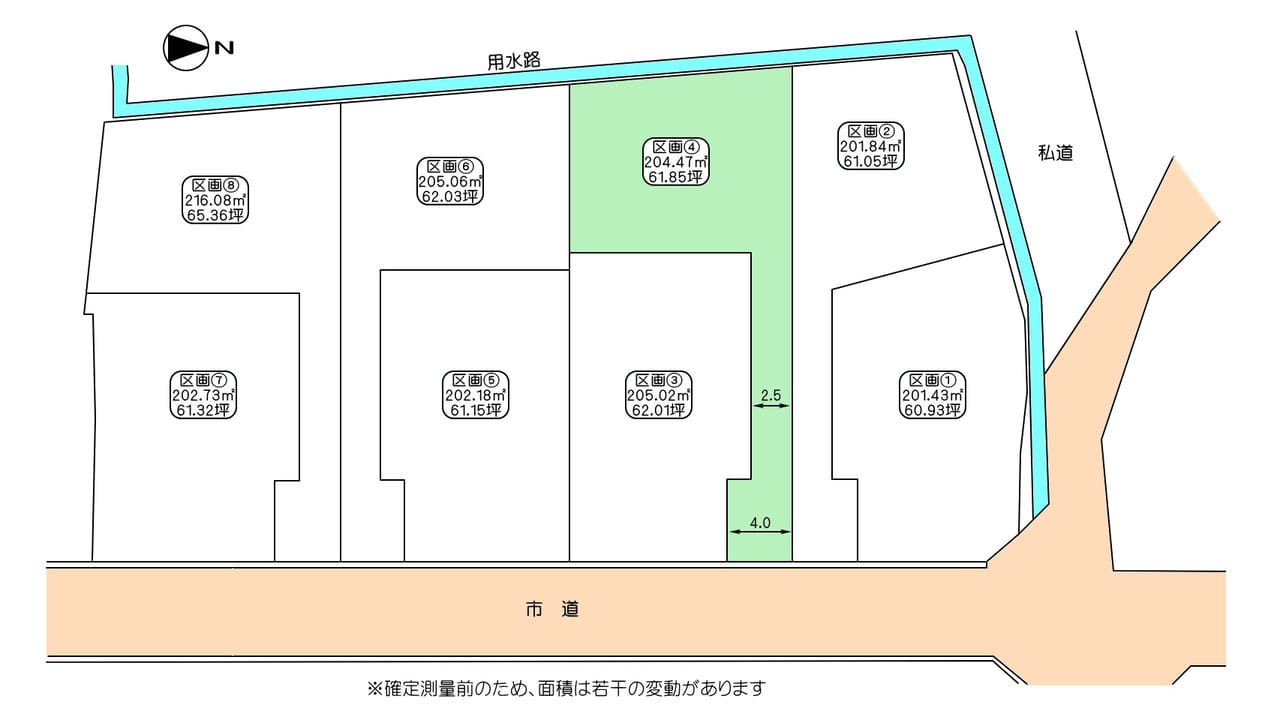 | 土地面積 | 実測 204.47㎡ (61.85坪) | 私道負担面積 | |